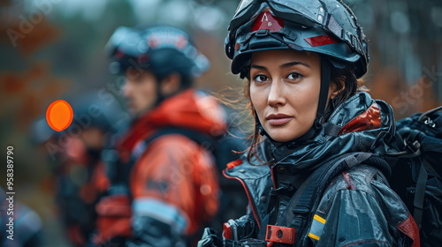woman, female, rescuer, hero, brave, courageous, safety, emergency, first aid, volunteer, firefighter, firefighter, helmet, jacket, backpack, rescue, outdoors, forest, timberland, wood, natural, looking, confident, determined, serious, professional, profession, career