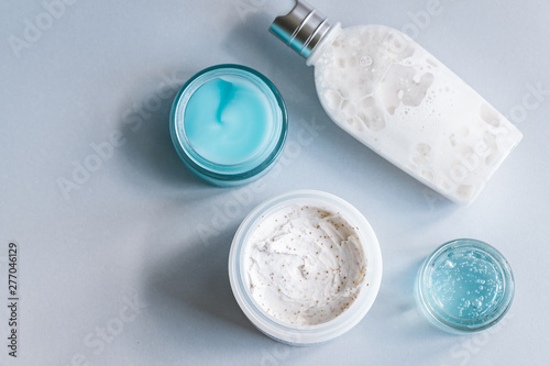 beauty, skincare, white, background, product, cosmetic, cream, woman, skin, topview, up high, organic, essential, serum, concept, care, spa, body, natural, still life, blog, face, minimal, jar, facial, table, treatment, beautiful, mask, copy space, female, balm, bottle, cleanser, luxury, branding, scrub, package, blue, cardboard box, summer, moisturise, vacation, toiletry