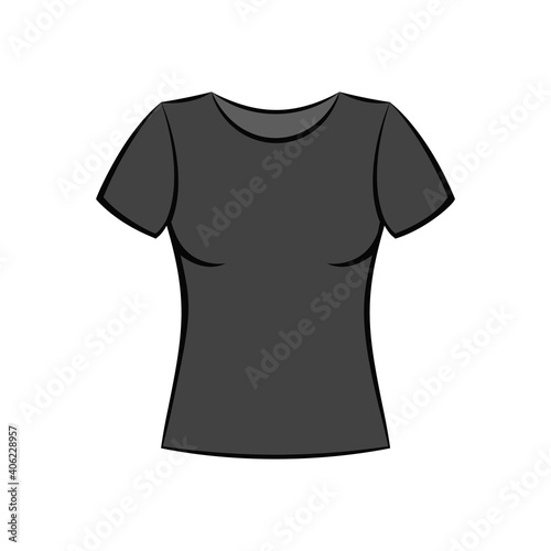 icon, clip art, advertisement, advertising, apparel, blank, clothes, clothing, commercial, concept, cotton, fashion, female, formation, front, model, outfit, presentation, shirt, sleeve, style, t-shirt, template, textile, top, woman, white, decorative, object, symbol, element, emblem, design, single, background, clothes, uniform, black, summer, seasonal, sport, clean, new, basic, casual attire, simple, flat, vector, illustration
