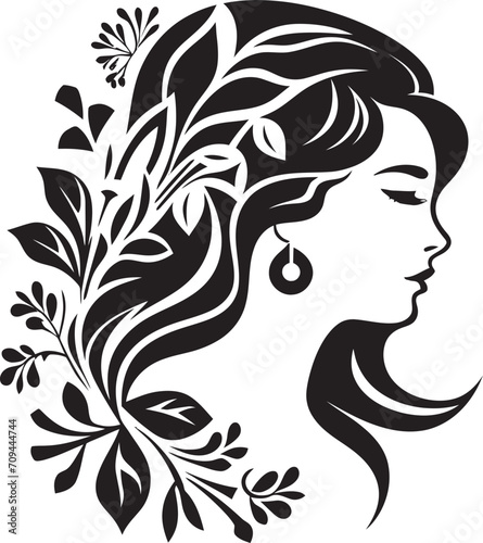 Feminine Flourish Vector Symbol of a Black Floral Woman Face Radiant Rose A Black Logo Design Showcasing Floral Woman Face