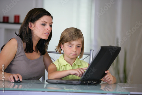 baby girl, toddler, adult, mother, family, kin, working, work, connect, connection, navigate, cyberspace, web, wi-fi, two people, european, european, indoor, horizontal