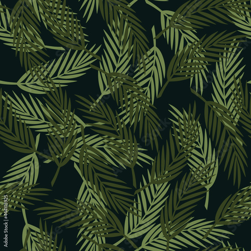Fern leaves, seamless on a dark background. Forest pattern. Vector.