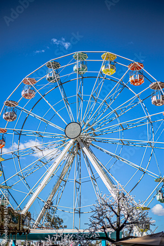 wheel, fun, ferris, sky, park, ferris wheel, fair, amusement, ride, carnival, entertainment, blue, big, attraction, round, summer, circle, fairground, carousel, leisure, high, festival, joy, big fish, amusement park
