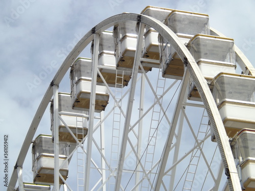 architecture, building, sky, steel, construction, structure, blue, roof, bridge, metal, coaster, park, roller coaster, fun, ferris wheel, ride, roller, amusement, tower, glasses, wheel, stair, city, urban