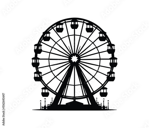 ferris, wheel, icon, vector, silhouette, amusement, ride, park, carnival, fair, festival, attraction, entertainment, round, spinning, rotate, motion, circle, fun, graphic, illustration, outline, minimal, flat, design, black, white, structure, mechanical, classic, fairground, funfair, loop, shape, isolated, simple, rotation, joy, giant, circular, symmetry, holiday, leisure, event, geometry