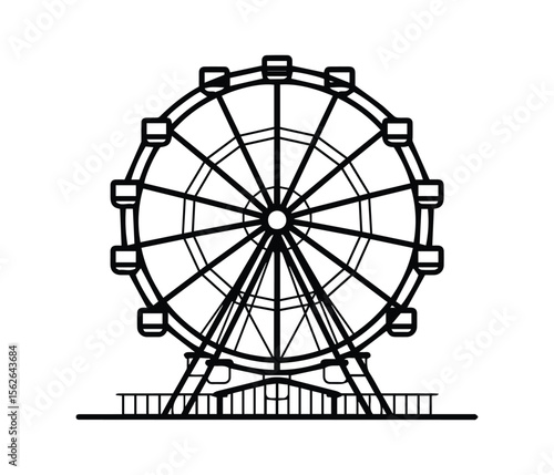 ferris, wheel, icon, vector, silhouette, amusement, ride, park, carnival, fair, festival, attraction, entertainment, round, spinning, rotate, motion, circle, fun, graphic, illustration, outline, minimal, flat, design, black, white, structure, mechanical, classic, fairground, funfair, loop, shape, isolated, simple, rotation, joy, giant, circular, symmetry, holiday, leisure, event, geometry