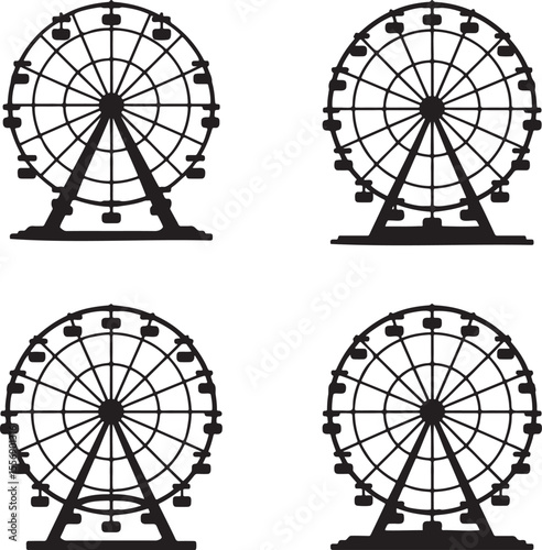 Ferris wheel silhouette set vector illustration isolated On Transparent Background