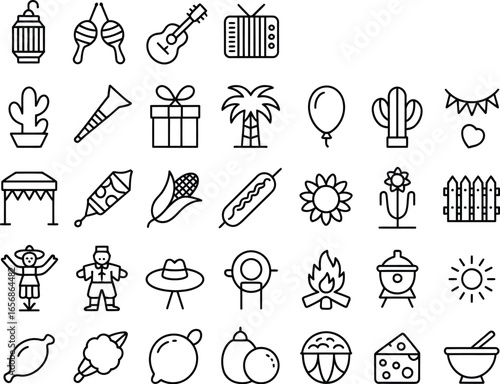 Festa Junina Iconography A Collection of 30 Black and White Line Art Symbols for Brazilian June Festivals