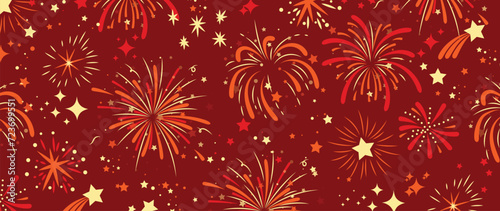 Festival chinese backdrop vector. Happy chinese new year wallpaper design with golden fireworks on red background. Modern luxury oriental illustration for cover, banner, website, decor, advert.