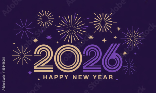 2026, happy new year, new year, fireworks, celebration, holiday, vector, illustration, design, graphic, greeting card, festive, event, party, purple, gold, star, sparkle, decorative, ornament, background, abstract, calendar, date, year, new, typography, number, line, pattern, invitation, card, template, poster, banner, flier, advertisement, marketing, promotion, december, jan, season, seasonal, winter, christmas, anniversary, birthday, happy