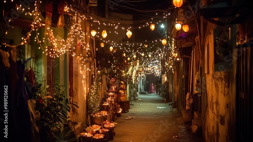 Festive Alley Illuminated with Colorful Lanterns
