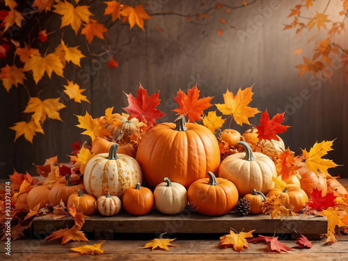 Festive Autumn Table Decor with Leaves and Pumpkins