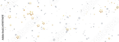 Festive background with gold and silver stars and snowflakes. Perfect for holidays.