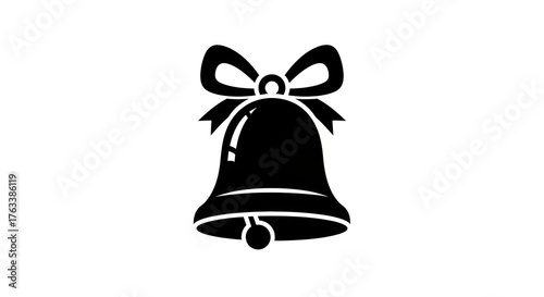 bell, bow, celebration, holiday, festive, decoration, ornament, christmas, new year, winter, event, greeting, icon, symbol, design, illustration, graphic, ringing, joy, season, traditional, vintage, retro, minimalist, silhouette, vector, clip art, art, drawing, outline, black, white, simple, elegant, announce, reminder, alert, notification, signal, sound, occasion, party, invite, ribbon, knot, attaching, present, gift, package