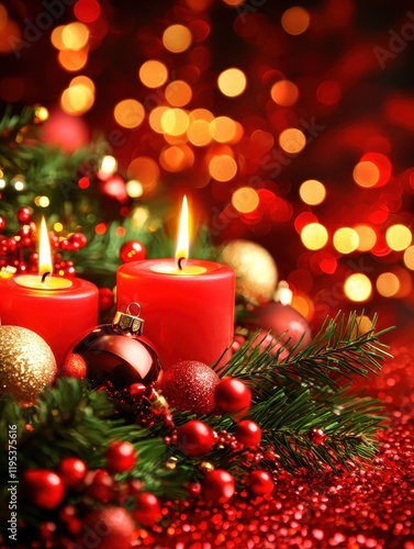 Festive candlelit celebration christmas decor holiday arrangement cozy atmosphere close-up view warm glow