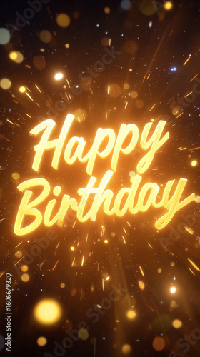 Festive celebration of a special occasion with bright golden lettering wishing happy birthday