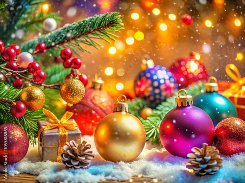 Festive Christmas Background with Snowflakes, Ornaments, and Holiday Cheer for Creative Projects