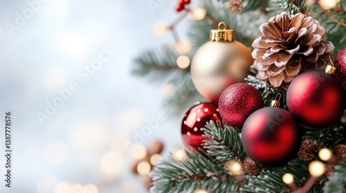 christmas, decoration, ornament, ball, light, tree, festive, holiday, winter, season, sparkle, pine, cone, red, gold, beautiful, sparkling, cosy, warm, elegant, celebration, celebratory, decor, ornament, bauble, new year, snow, home, family, gift, joy, spirit, love, peace, design, decoration