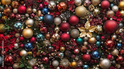 christmas, ornament, decoration, holiday, festive, shiny, bauble, red, gold, green, sparkling, texture, background, celebration, winter, pine, floral, star, traditional, bright, seasonal, joy, warmth, style, design, gift, tree, arrangement, cosy, vibrant, nature, beauty, colours, home, cheerful, classic, pattern, decoration, merry, joyful, artistic, craft, holiday spirit