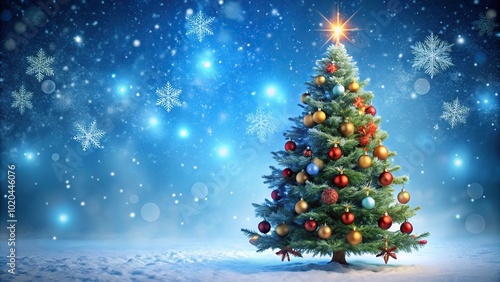 Festive Christmas scene with decorated tree and snowflakes in forced perspective