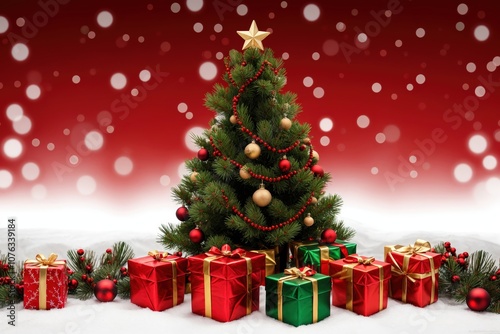christmas, tree, gift, decoration, holiday, festive, red, green, ornament, star, decoration, gift, christmas, celebration, christmas tree, present, new, fir, year, box, ball, winter, santa, pine, ornament, season, vector, gold, design, ribbon