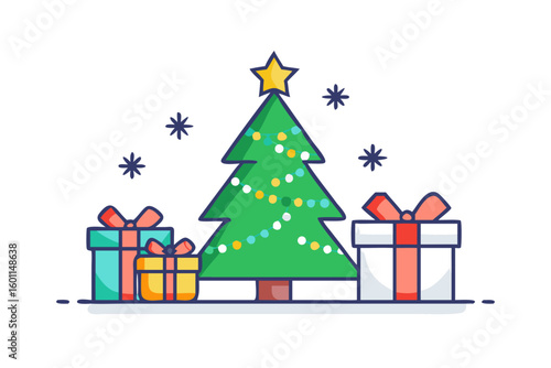 christmas, tree, gift, present, snowflake, winter, holiday, celebration, decoration, light, star, festive, merry, season, greeting, card, illustration, vector, icon, graphic, new year, christmas eve, christmas, surprise, joy, happiness, traditional, winter holiday, christmas spirit, holiday season, christmas lights, gift box, snow, background, black background, isolated, simple, modern, cute