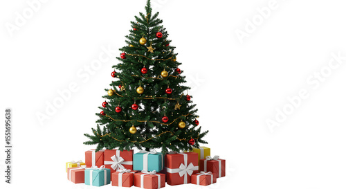 Festive Christmas Tree with Gifts Isolated Transparent Background