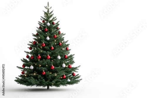 Festive evergreen bedecked with crimson and ivory baubles whispers Yuletide tales, embracing solstice magic and Tannenbaum traditions