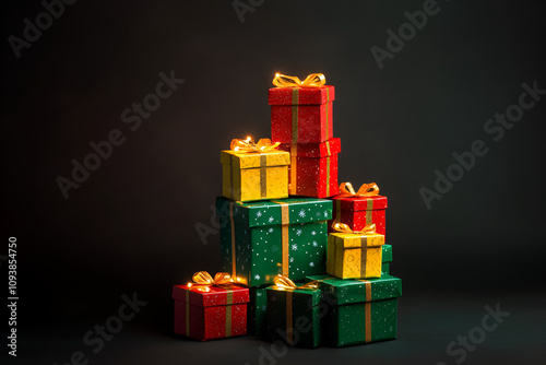 Festive gift stacks holiday season product photography dark background close-up celebration concept for seo impact