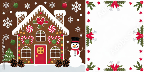 Festive Gingerbread House Snowman Christmas Card Design