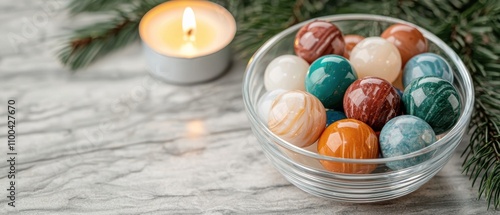 holiday, christmas, ornament, candle, decoration, celebration, winter, festive, cosy, seasonal, glasses, marble, colourful, still life, pine, branch, nature, warm, glow, ambience, decor, tradition, joy, cheer, peaceful, elegant, luxurious, tranquil, serene, rustic, homely