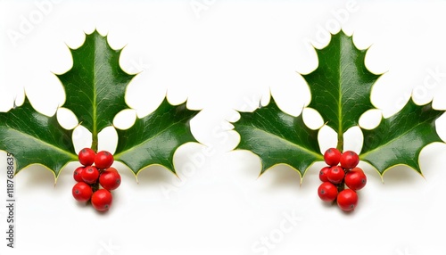 Festive holly sprigs with vibrant red berries against a stark white backdrop.