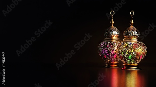 Festive lanterns, Islamic celebration, dark background, holiday greeting