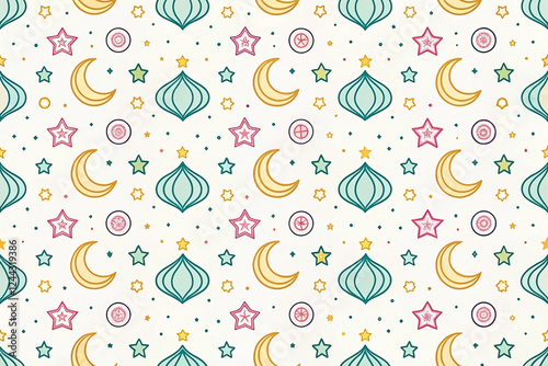 Festive moon, star, and lantern pattern background for textile