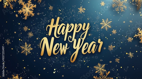 Festive New Year Card with Gold Snowflakes and Happy New Year Greeting