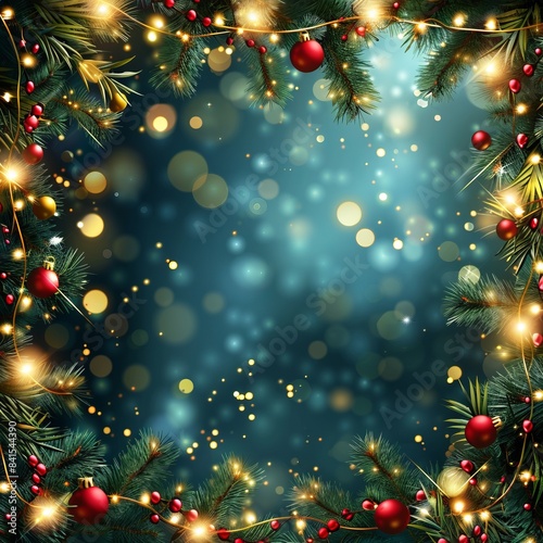 Festive New Year's Background with Christmas Tree Decorations Generative AI