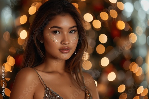 portrait, woman, asian, festive, sparkle, make-up, bokeh, light, young, beauty, glamour, holiday, elegance, fashion, style, celebration, event, christmas, glistering, shimmer, decoration, brunette, attractive, stylish, radiant, vibrant, party, glowing, joy, warmth, happiness, youth, trendy, chic, allure, charme, grace, seasonal, closeup, facial, expression, serene, cultural, diversity, aesthetic, festive season, enchanting, magical
