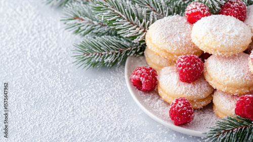 cookie, raspberry, powdered, sugar, wintery, festive, dessert, plate, holiday, sweet, icing, pastry, pine, tree branch, treat, pine cone, food, tasty, celebration, delicious, baking, homemade, epicure, snack, frosty, culinary, seasonal, decoration, confectionery, cold, cookery, needle, savour, biscuit, elegant, rich, cosy, indulgence, appetising, snowy, expensive, luxury, ornament, garnished