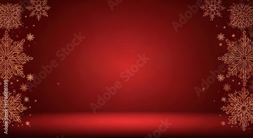 red, gold, snowflake, winter, holiday, festive, background, decoration, sparkle, ornament, abstract, design, christmas, new year, celebration, elegant, beautiful, gradient, glow, light, bright, stage, display, empty, space, warmth, texture, delicate, pattern, detail, shape, frame, corner, border, scattered, twinkling, small, large, isolated, modern, chic, simple, greeting, card, invitation, party, event, season, cheer