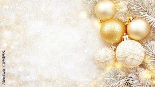 Festive Season's Embrace: A heartwarming display of golden Christmas ornaments and delicate silver branches creates a joyful atmosphere, reflecting the magical feeling of celebration.