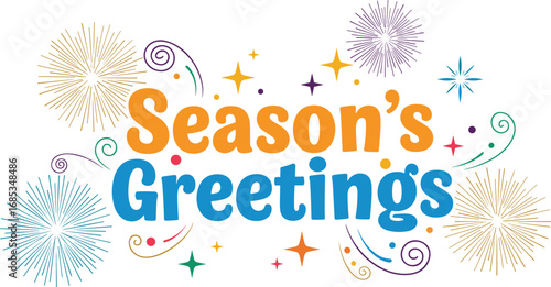 Festive season's greetings design with colorful fireworks. Holiday cheer, festive, celebration, greeting card, happy new year, party, event, cheerful
