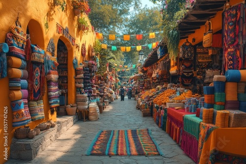 Festive Street Market Brimming with Colorful Decorations and Local Goods