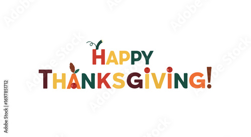 Festive Thanksgiving Greeting with Colorful Lettering and Holiday Accents for Seasonal Design