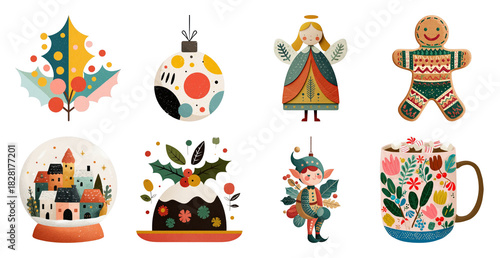holiday decorations, festive season, illustration, celebration, transparent, collection, decorative, christmas, whimsical, artistic, colourful, isolated, new year, ornament, seasonal, artwork, element, festive, holiday, design, drink, people, winter, event, icon, mixed, set, decoration