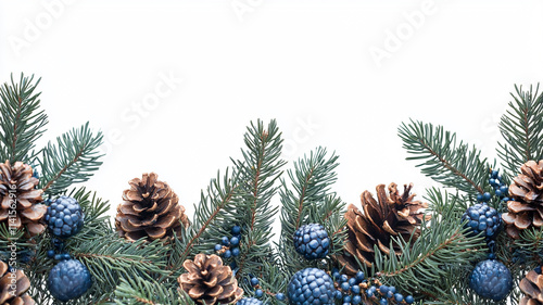 Festive Winter Border Pine Cones Blue Berries and Fir Branches