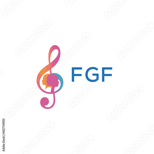 FGF “Creative music logo with human silhouettes and treble clef in gradient colors, FGF Later Logo, modern artistic design isolated on white background”