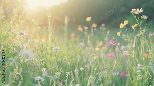 wildflower, field, breeze, sunlight, nature, meadow, flower, blossom, greenery, spring, landscape, rural, growth, flora, calmness, peace, outdoors, natural, fresh, harmony, colourful, scenic, beauty, environment, serenity, photo, delicate, flower petals, bloom, yellow, pink, purple, pastel, soft, sunshine, light, ray, gleam, macro, detailed, closeup, lifestyle, seasonal, relaxation