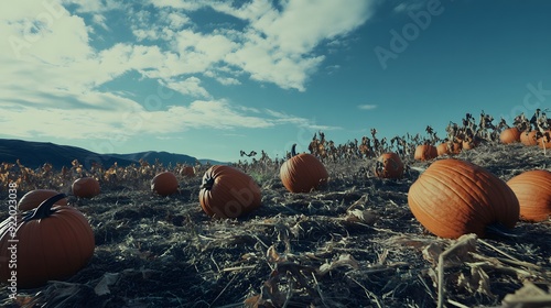 pumpkin, field, autumn, harvest, fall, seasonal, scattered, sky, outdoors, nature, farm, countryside, agriculture, season, orange, plant, ripening, vegetable, patch, day, landscape, rural, halloween, thanksgiving, tradition, natural, growing, crop, ground, daylight, blue skies, october, harvesting, rustic