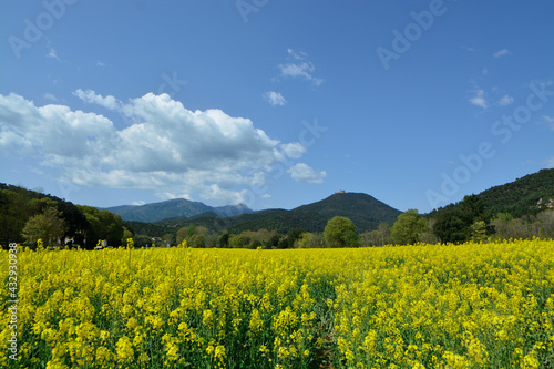 field, landscape, yellow, sky, flower, nature, agriculture, meadow, spring, summer, blue, rapeseed, rural, flower, green, canola, cloud, plant, farm, countryside, blossom, oilseed, grass, land, bright