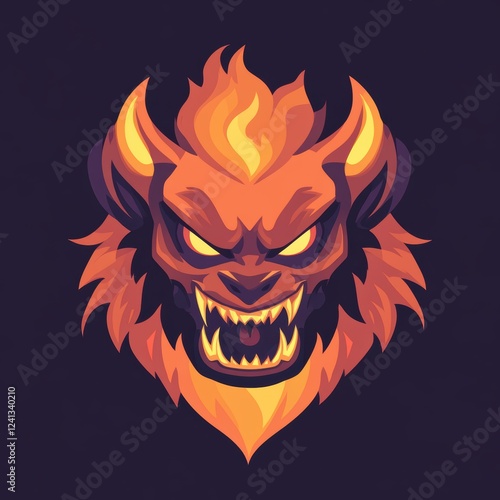 wolf, mascot, logotype, fierce, flaming, glowing, eye, sharp, teeth, aggressive, illustration, vector, creature, beast, fantasy, mythical, gaming, powerful, wild, animal, bold, graphic, creative, stylised, modern, energetic, striking, strong, warrior, intimidating, sinister, dark, detailed, gothic